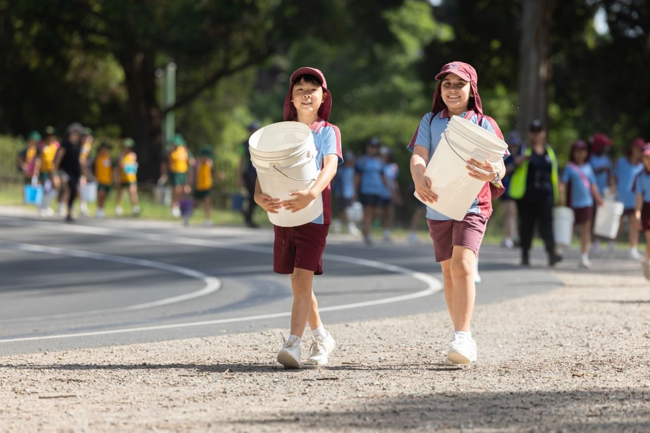 Beginning at Parramatta Park, students carried buckets of water along a 4km route, gaining a glimpse of the daily journey faced by people in developing communities, especially women and children, in search of clean water.
